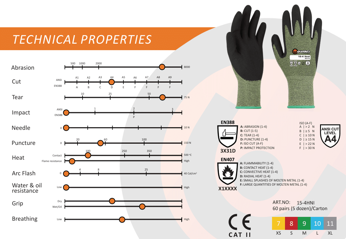 The Eureka 15-4 Heat Nitrile is a super thin glove designed for maximum flexibility and protection. With heat resistance up to 212°F, it’s perfect for handling hot materials and working in environments where contact heat is a concern. The glove also boasts an impressive A4 cut level, providing reliable protection without compromising dexterity. Ideal for industrial applications, the Eureka 15-4 Heat Nitrile ensures you stay safe while maintaining the precision and comfort you need.
