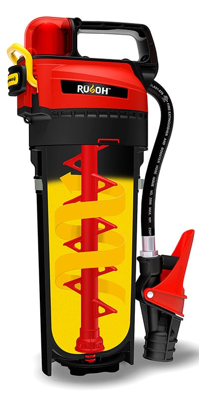 Ergonomically designed for quick deployment by anyone, the Rusoh Eliminator utilizes a valve and nozzle assembly that lets you control the flow and direction of discharge with one hand. The nozzle design is optimized for a wider dispersion of the dry chemical extinguishing agent and provides superior suppressing power when compared to traditional nozzle designs.